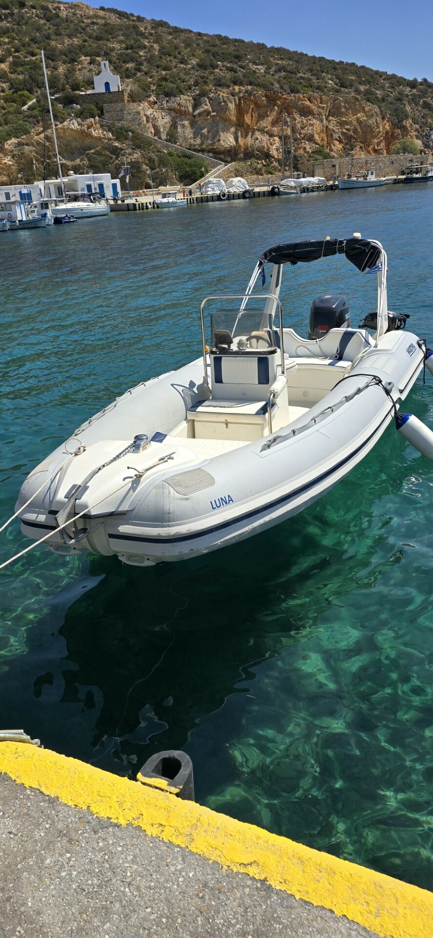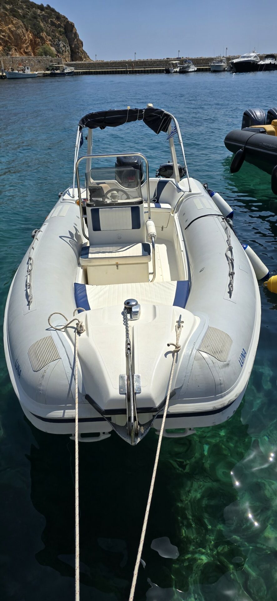 Meet “Luna,” A La Mer’s newest RIB boat – a 6.3m beauty with a powerful 200hp motor, perfect for couples or a family.